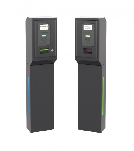 Terminal wjazdowy umożliwia wjazd na parking za pobraniem biletu dla klientów rotacyjnych oraz abonamentowych - poprzez zbliżenie karty RFID do urządzenia. Terminal podaje sygnał otwarcia do szlabanu po wcześniejszym pobraniu biletu przez klienta lub po pozytywnej weryfikacji karty abonamentowej. Na wyświetlaczu LCD pojawiają się komunikaty i instrukcje do korzystania z urządzenia. Terminale parkingowe wyposażone są sygnalizację świetlną stanu wjazdu oraz możliwość rozbudowy o moduły dodatkowe jak interkom wideo, czytniki kart RFID, czytniki dalekiego zasięgu, kamerę LPR a także dodatkowy skaner biletów w celu obsługi tzw. biletu hotelowego - w terminalu wjazdowym, oraz w czytnik kart płatniczych - w terminalu wyjazdowym.