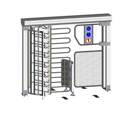 Wysoka furta z dodatkową bramką uchylną, umożliwiającą przejazd dla wózka inwalidzkiego lub dla dzieci. Przeznaczony do pracy na zewnątrz jako element kontroli dostępu do stadionu, obiektu rekreacyjnego lub zakładu pracy.