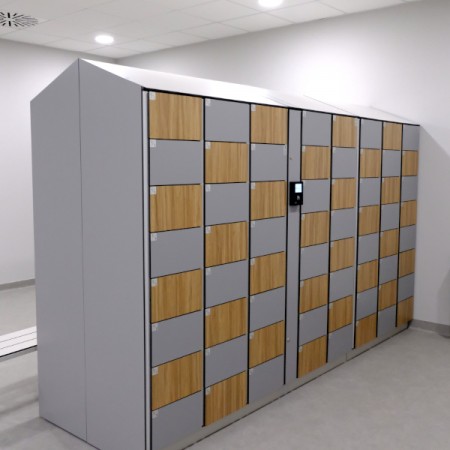 Szafki mogą być wykonane z płyty HPL, LPW lub metalu.
